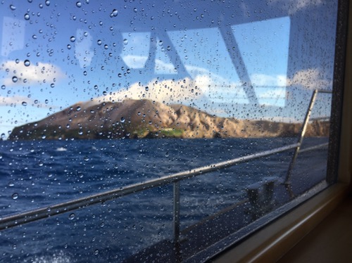 Die Entscheidung ob wir lieber innen sitzen wollen oder in der oberen Etage halb außen war erstmal schwierig. Aber schon nach kurzer Zeit haben wir unseren gemütlichen Platz auf einer Couch im Inneren mehr als genossen. Die See war heute mehr als rau und für jeden nicht so leicht bekömmlich. Fast zwei Stunden extremer Wellengang, kräftiges hin und her Geschaukel schlug sehr vielen auf dem Magen und es waren einige dabei, die von Kotztüten Gebrauch machten. Aber wir hielten eisern bis zum Schluss durch aber waren sehr froh als die Insel immer näher kam.