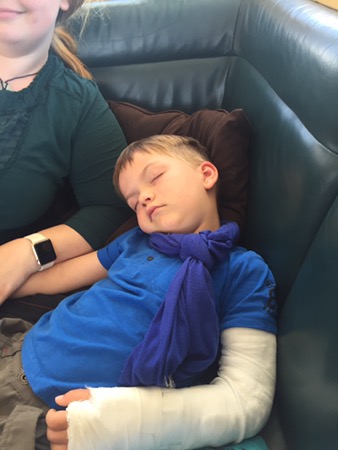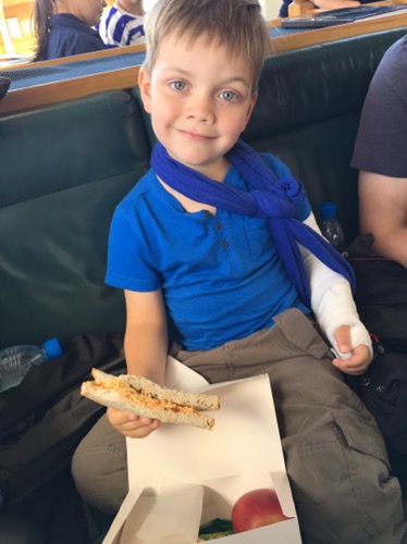 Wir haben heut auch ein Bad mit einem im Müllbeutel wasserdicht verpackten Gipsarm gewagt. Das war für alle schön und wir sind auch mit trockenem Gipsarm (Marian) wieder aus dem Wasser gekommen. 🙂