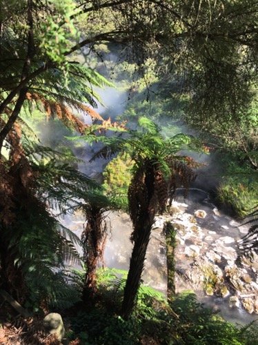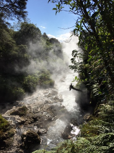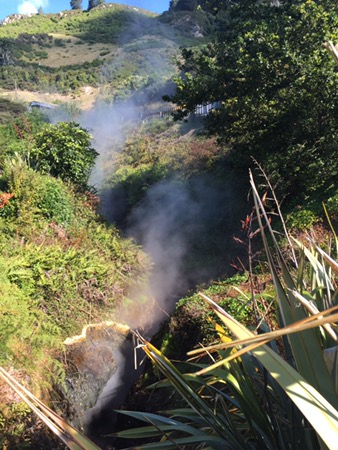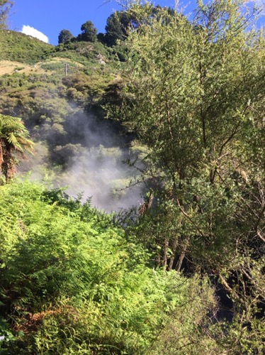 Wir haben einen tollen Campingplatz mit 5 thermalen Pools im Thermal Valley erwischt. Der Campingplatz liegt an einem Fluss, der 98 grad Heißes Wasser über eine Strecke von drei km transportiert und dann auf 50 grad runterkühlt. Das schaut wirklich genial aus – der sich durch das Tal schlängelnde dampfende Fluss.
