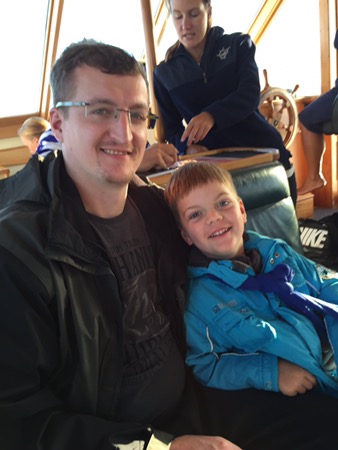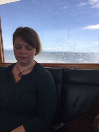 Danach ging es wieder kräftig schaukelnd zurück. Einige Aussenplätze waren extrem feucht, da die Wellen sehr hoch spritzen. Aber wir saßen ja gemütlich im Inneren des Schiffs und Marian schlief auch sehr ruhig. Ich auch :-).