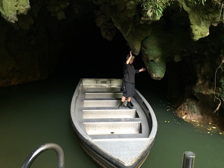Erst ging die Tour zu Fuß durch die Höhle. Das unterschied sich erstmal nicht von einer normalen Kalksteinhöhle mit Stalagmiten und Stalaktiten, war aber dennoch toll anzusehen. Aber dann, als wir immer mehr ins dunklere kamen, leuchtende 10000000te von Glühwürmchen von der Decke herab. Ein wirklicher Genuss für die Augen.