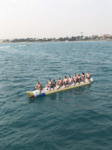 Anschließend fuhren wir wieder in Strandnähe und Fabian und Marian konnten dann eine Fahrt mit einem Bananenboot machen und zu dritt ließen wir uns dann noch eine Runde auf einem Sofa durch das Meer ziehen.