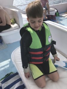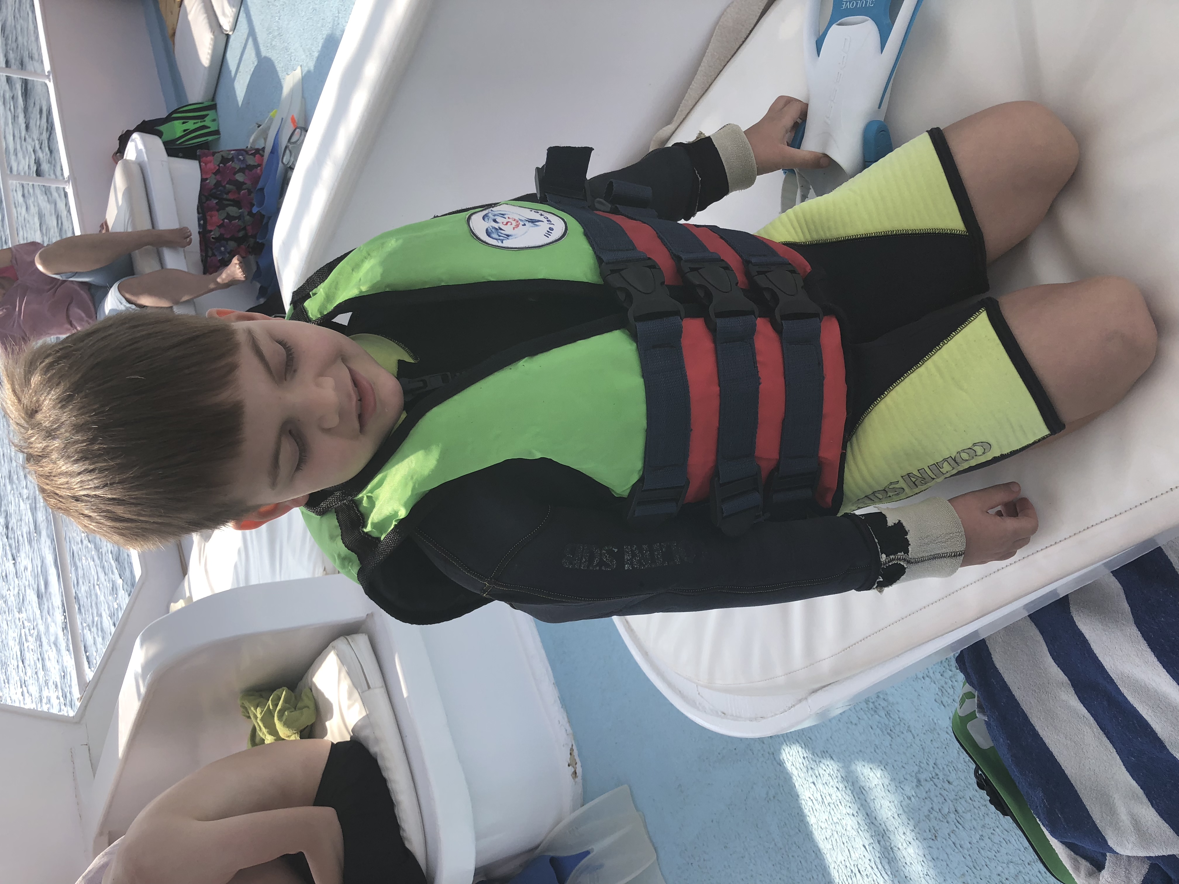 Danach ging es zum Schnorcheln auf dem offenen Meer. Mit voller Ausrüstung starteten wir unseren Schnorchelgang über ein paar Riffe und durften eine Vielzahl bunter Fische bewundern. Sogar ganz viele Nemos konnten wir live sehen. Marian war wie immer mittendrin und schwamm wie ein Weltmeister über die Riffe. Wir haben ihn zur Sicherheit einen Neoprenanzug und eine Schwimmweste angezogen. Doch wie immer machte er alles mit und hielt auch die Stunde im Wasser problemlos aus. Viele Leute sind auf dem Boot geblieben, doch wir waren wie immer mittendrin. 🙂 das Rote Meer war angenehm, so ca 21 Grad, und das Schnorcheln einfach ein Traum. Die Unterwasserwelt ist wirklich faszinierend.