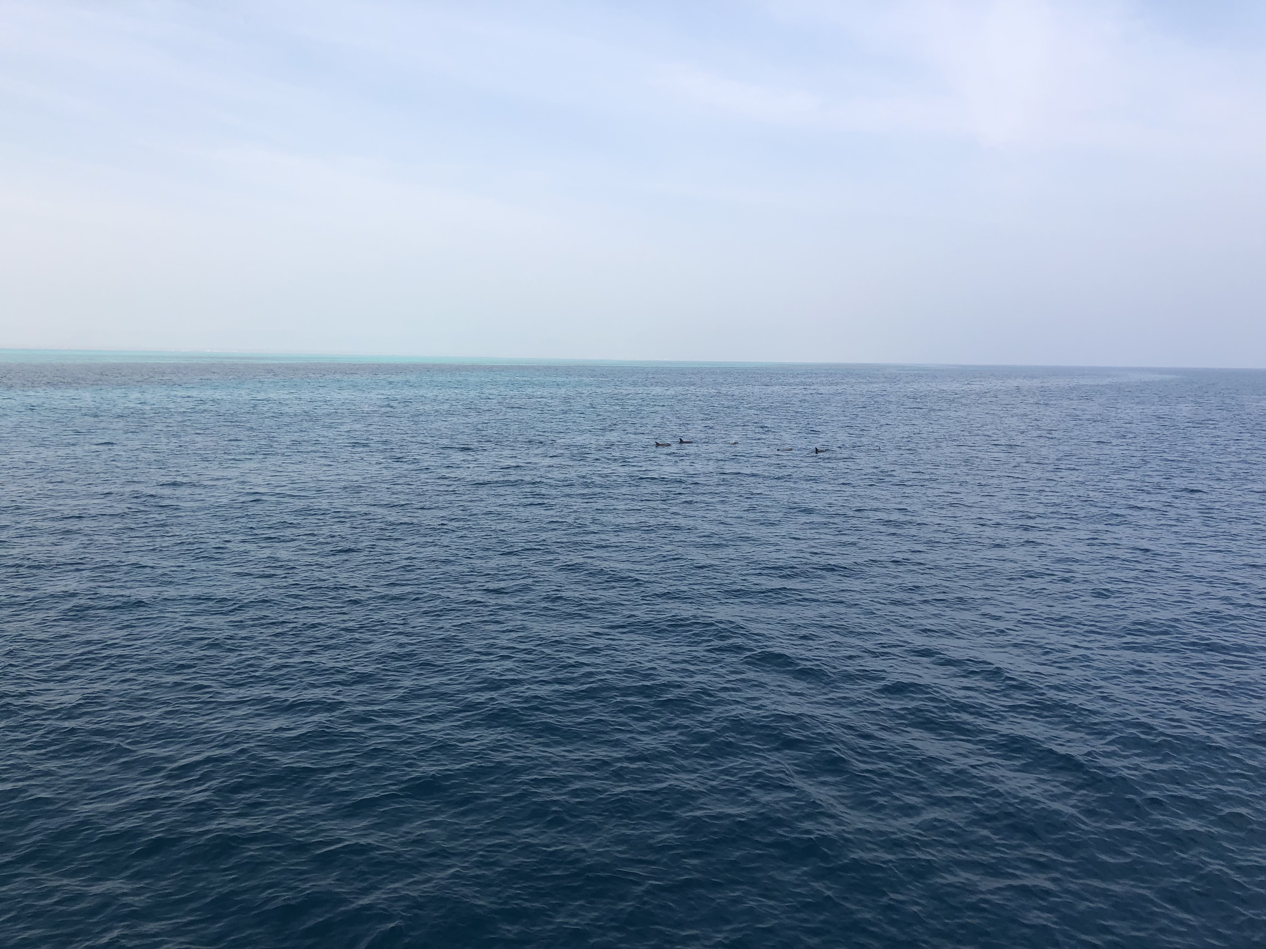 Nach einer etwa 20 minütigen Bootsfahrt konnten wir wirklich zahlreiche Delfine sehen und sie lange Zeit beobachten. Dieses Glück hatten wir ja schon mal in Griechenland, nur hier war es eine andere viel größere Delfinart, die nicht so weit über die Wasseroberfläche springen konnten. Ein schönes Erlebnis.